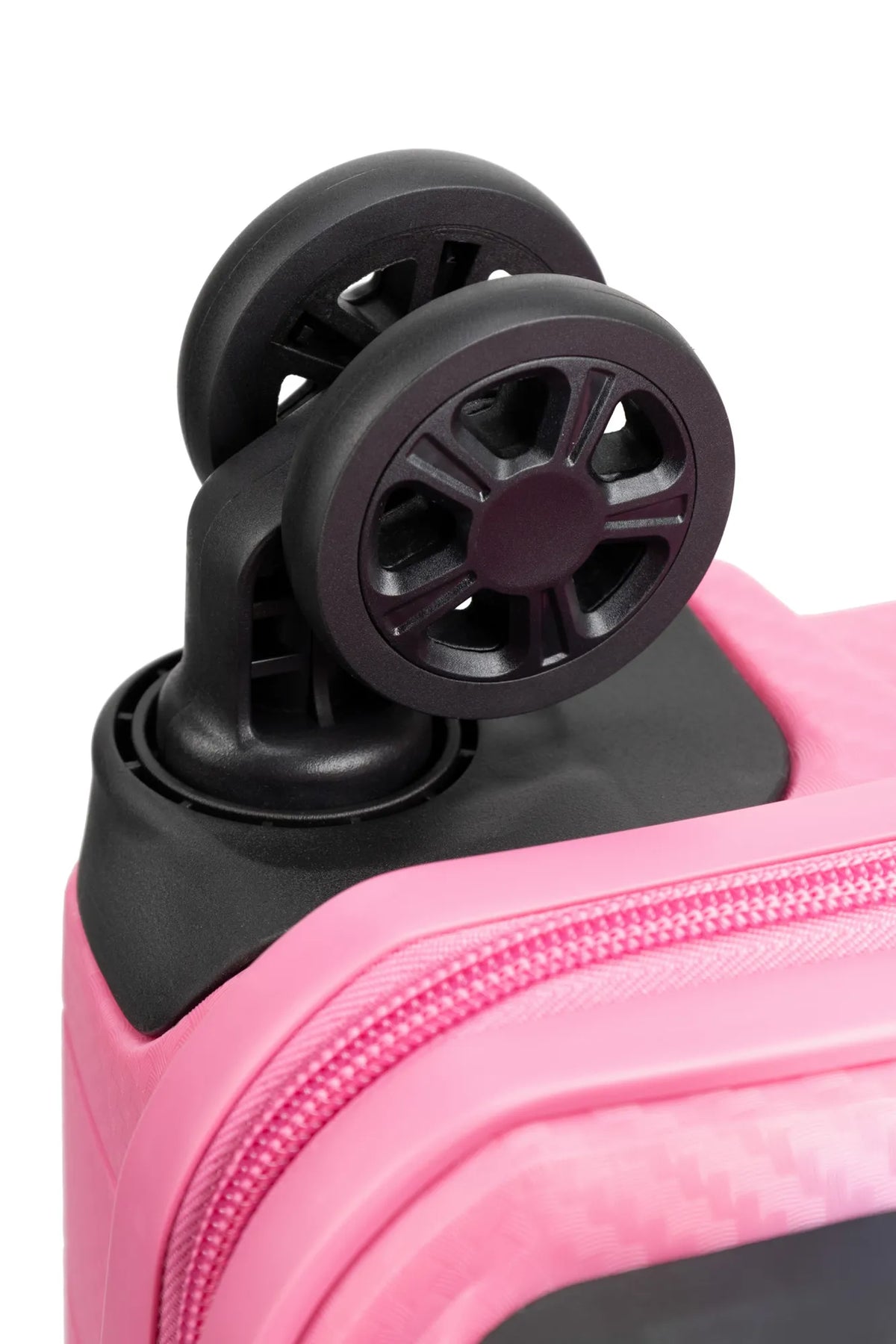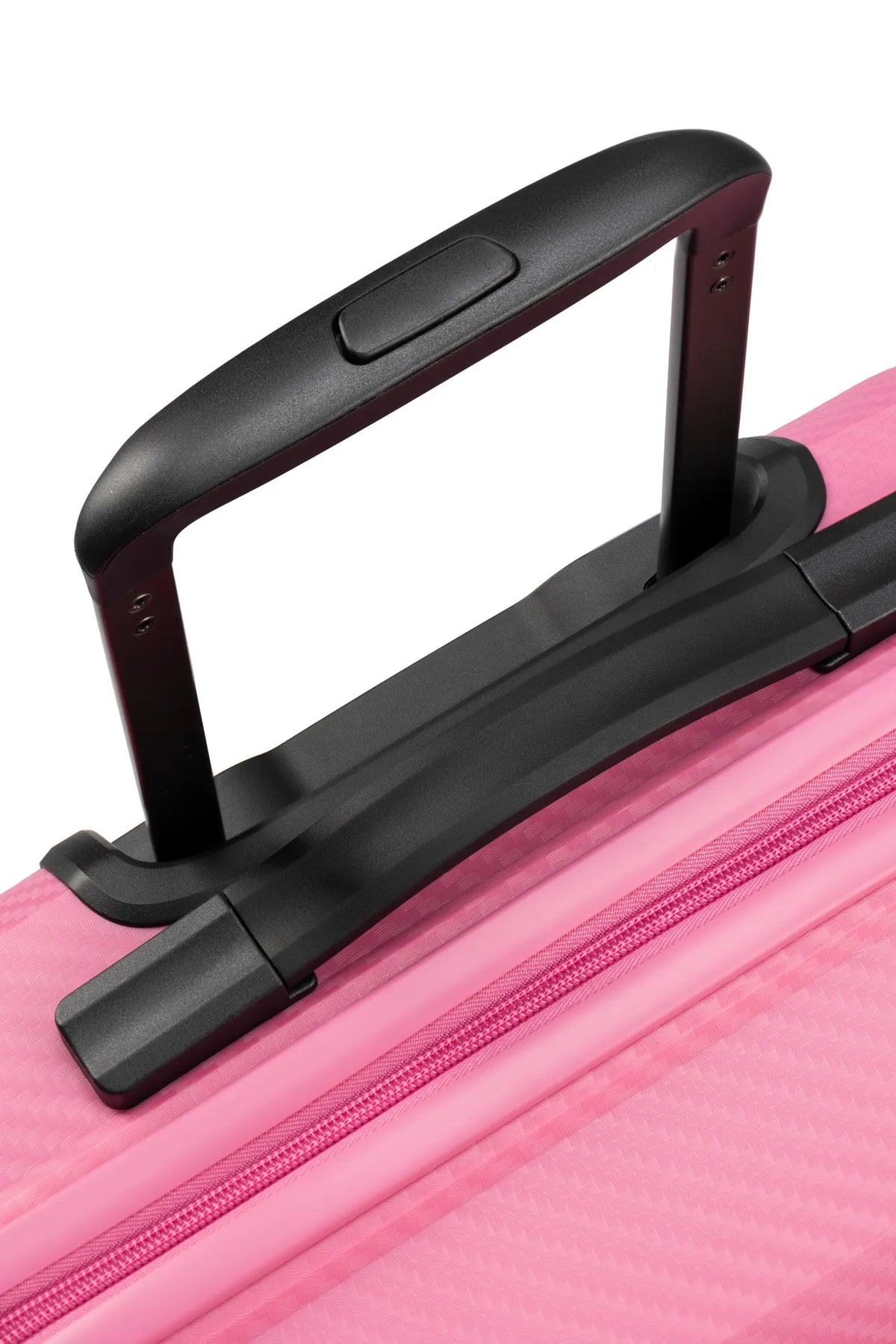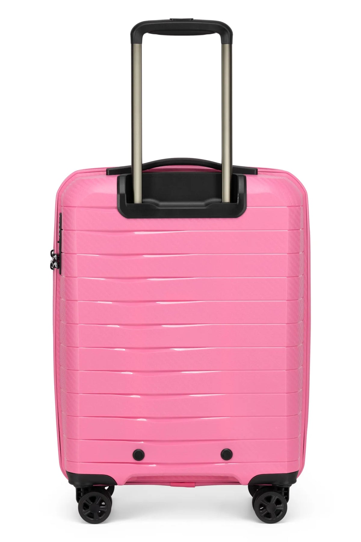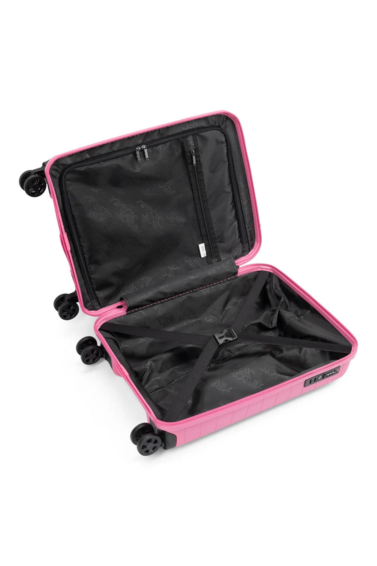 Dragsystemet kan ställas i flera olika steg och är tillverkat av starkt och lätt anodiserad aluminium. Fullt integrerade bärhandtag för enkel hantering. Den platta, helt integrerade designen hjälper till att säkerställa att de inte fastnar under transport och hantering. Väskan är utrustad med fyra smidiga och tysta dubbelhjul med 360 graders rotation för enkel manövrering. Insidan har en helt integrerad avdelare med två fack för organisation och packremmar som håller kläderna på plats.