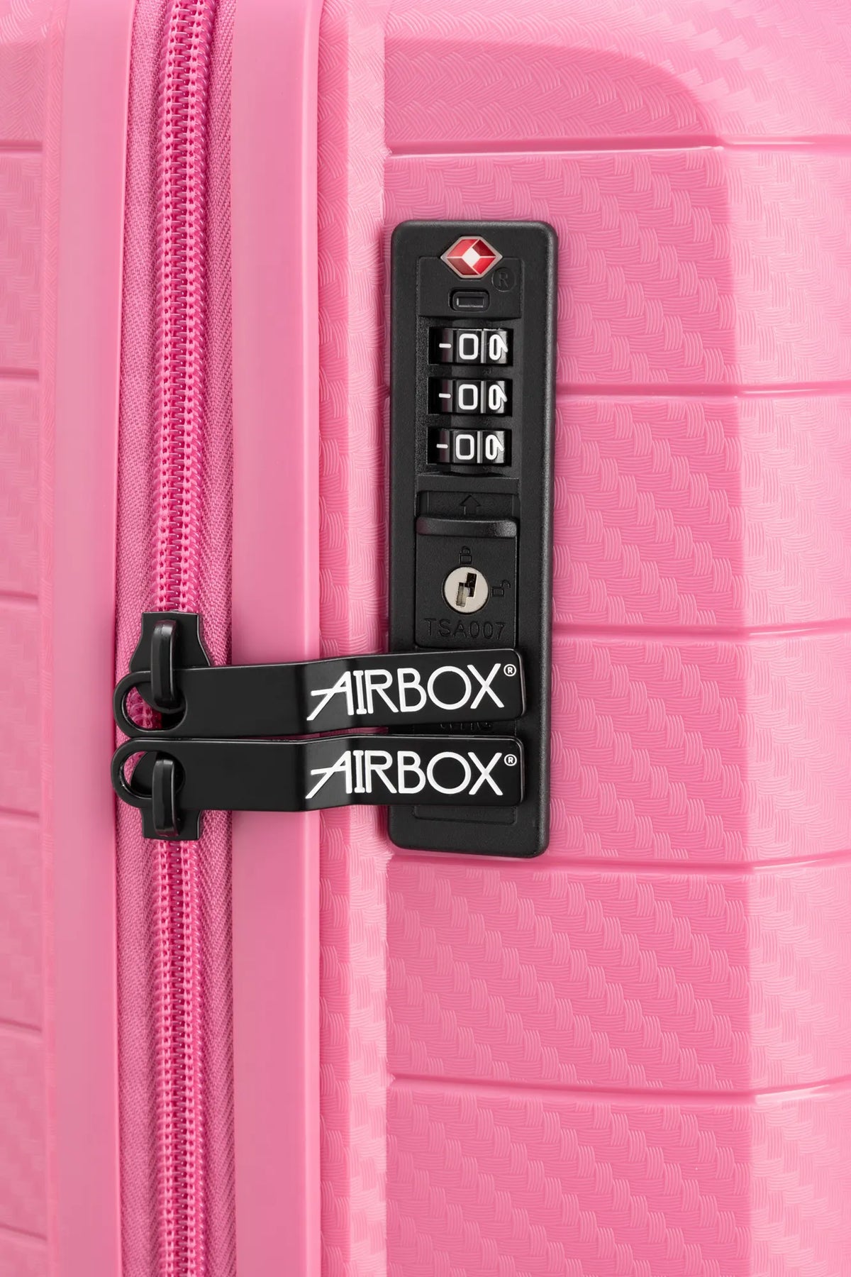Väskan är tillverkad av slagtålig, återvinningsbar och lätt polypropylen som kombinerar styrka och extremt låg vikt. Skalets unika struktur, designad av AIRBOX, garanterar att den klarar av påfrestningar vid hantering och resor. Alla komponenter håller högsta kvalitet och är designade för att möta kraven på hållbarhet, prestanda och lång livslängd. Komponenterna väljs ut och testas noggrant och är självklart utbytbara.